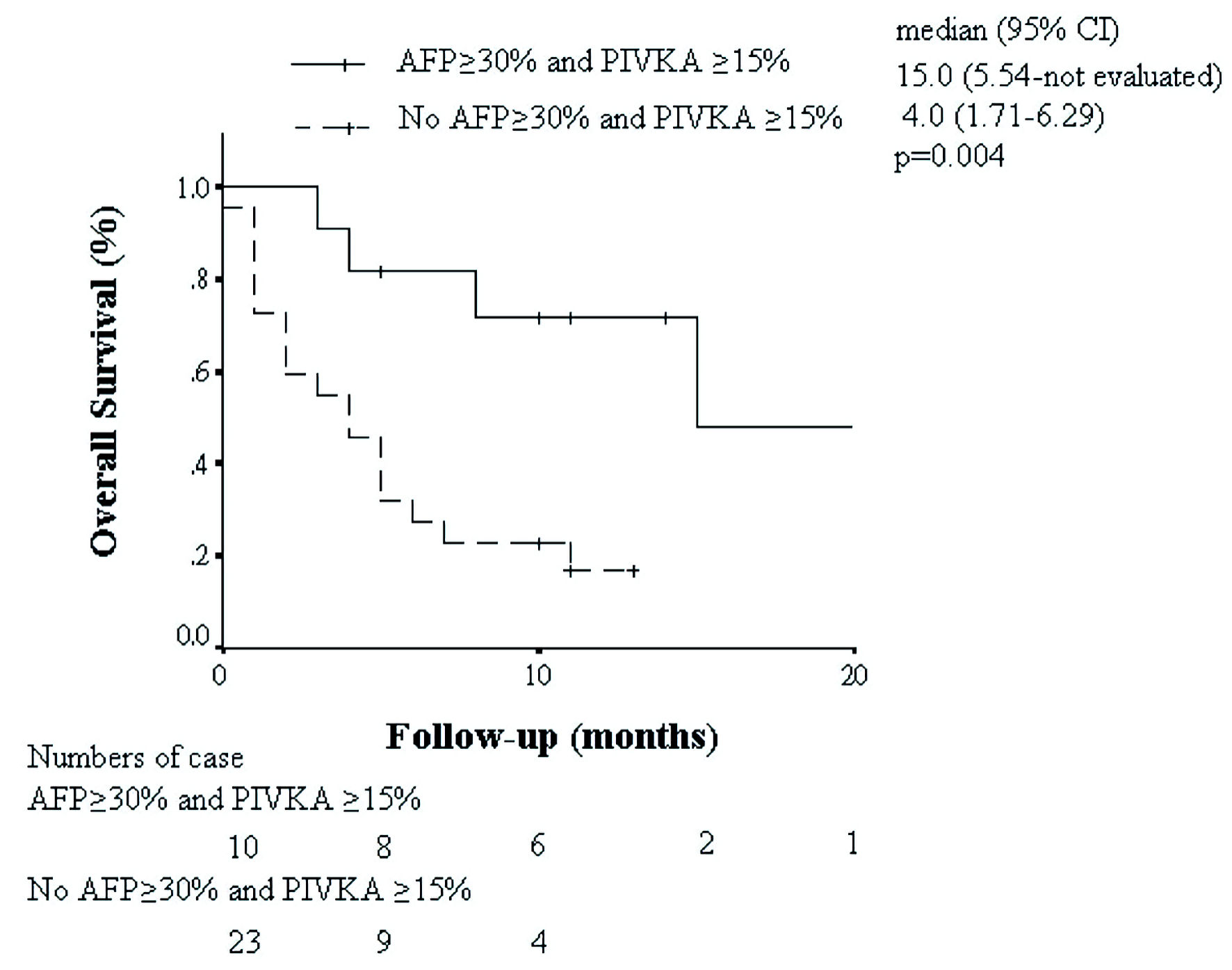 Conclusions: The patients with combined AFP/PIVKA-II decline during immunotherapy had a significantly better radiologic response and survival outcomes.
