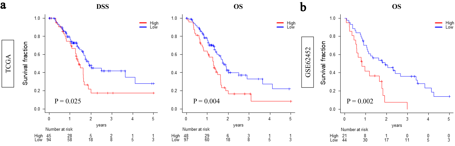 Kaplan-Meier analysis demonstrated that patients with high CDCP1 expression had significantly worse overall survival compared to those with low CDCP1 expression, both in the TCGA cohort (median: 14.2 vs. 22.7 months; P = 0.004) and the GSE62452 cohort (median: 12.6 vs. 20.5 months; P = 0.002) (Fig. 1).